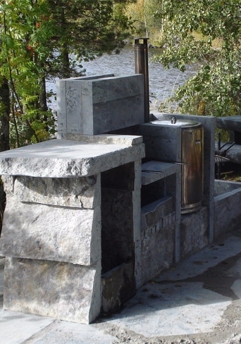Monikäyttöinen ja rustiikkinen ulkogrilli, joka on rakennettu asiakkaiden tarpeita vastaavaksi käytännölliseksi kokonaisuudeksi.